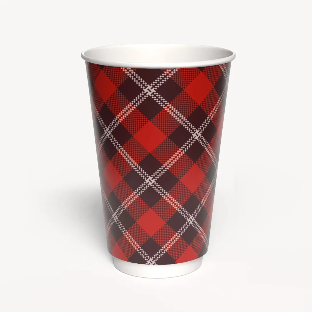 Kubek papierowy 2-warstwowy CIEMNA KRATKA 400 ml śr. 90 mm, czerwony (z logo żółw)
