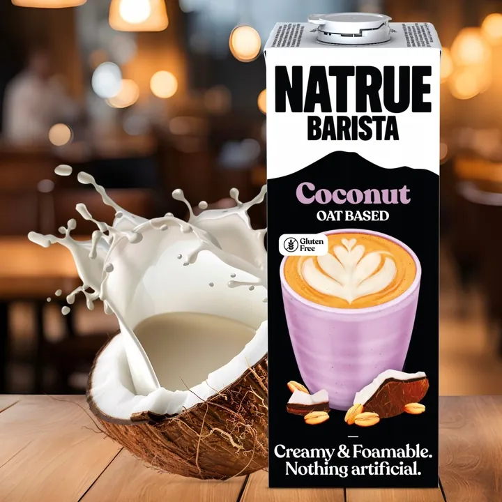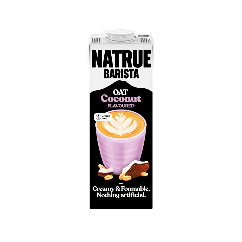 NATRUE Barista Oat Coconut Drink to kremowy napój owsiany w wersji barista, przełamany wyraźnym, tropikalnym smakiem kokosa!